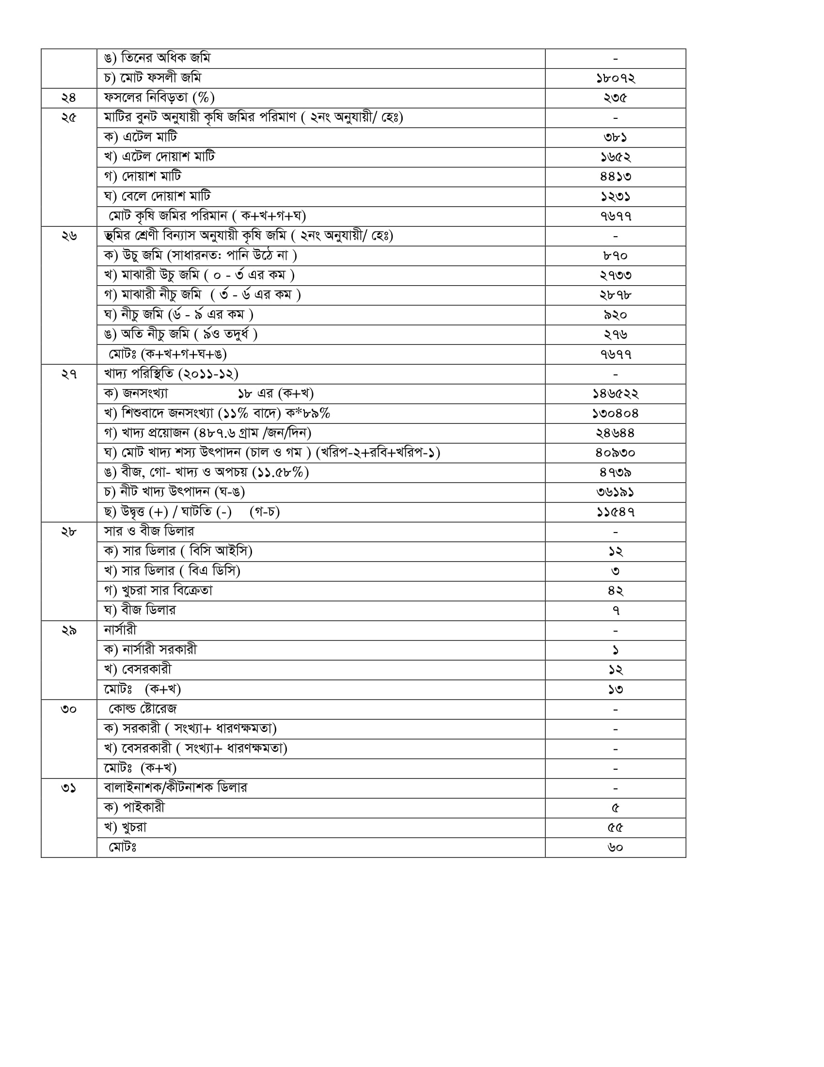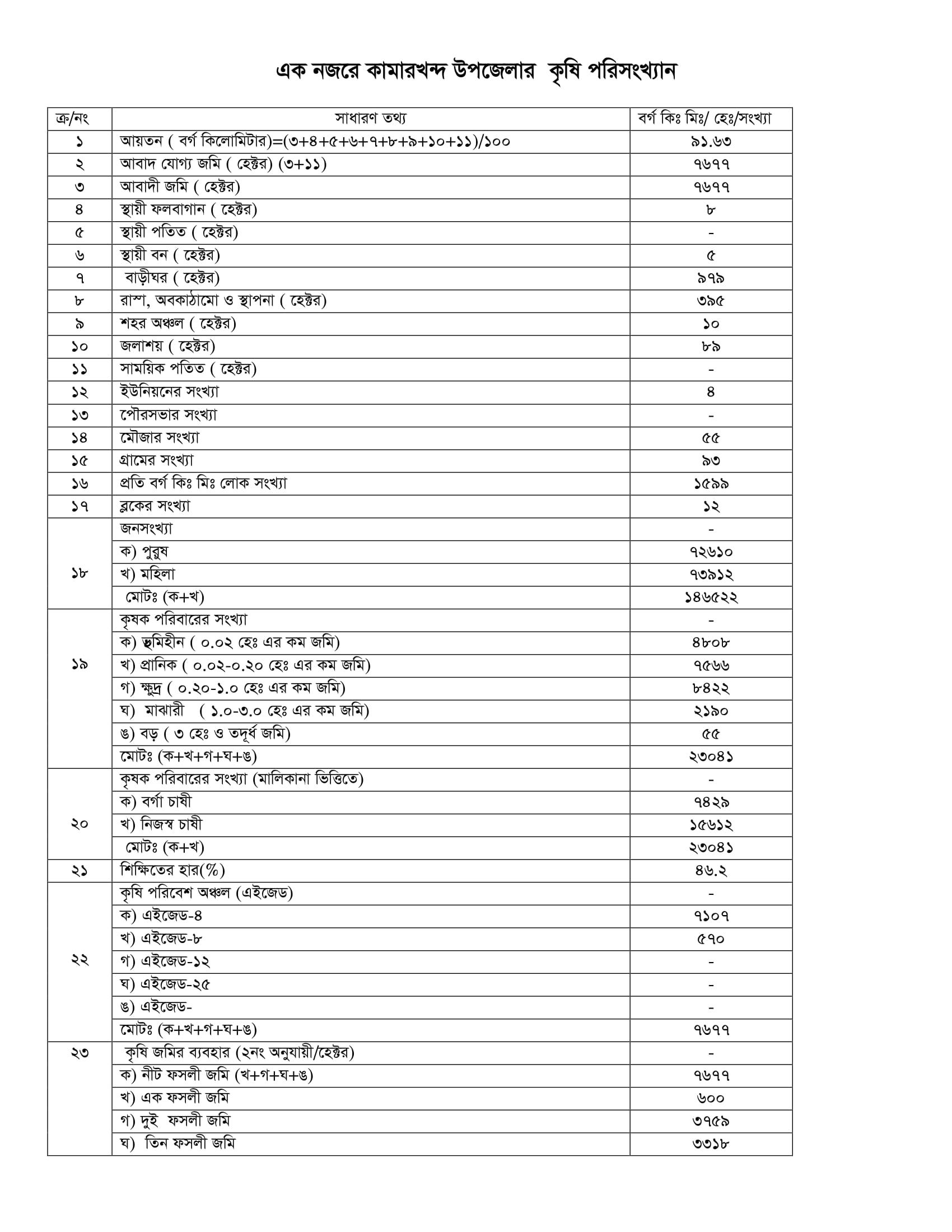 এক নজরে কামারখন্দ উপজেলার কৃষি সম্পর্কিত তথ্য